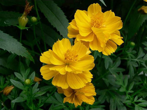 生活習(xí)性:硫華菊喜陽光充足,不耐寒。多分枝,葉為對(duì)生的二回羽狀復(fù)葉,深裂,裂片呈披針形,有短尖,葉緣粗糙,與大波斯菊相比葉片更寬。春播花期6-8月,夏播花期9-10月。